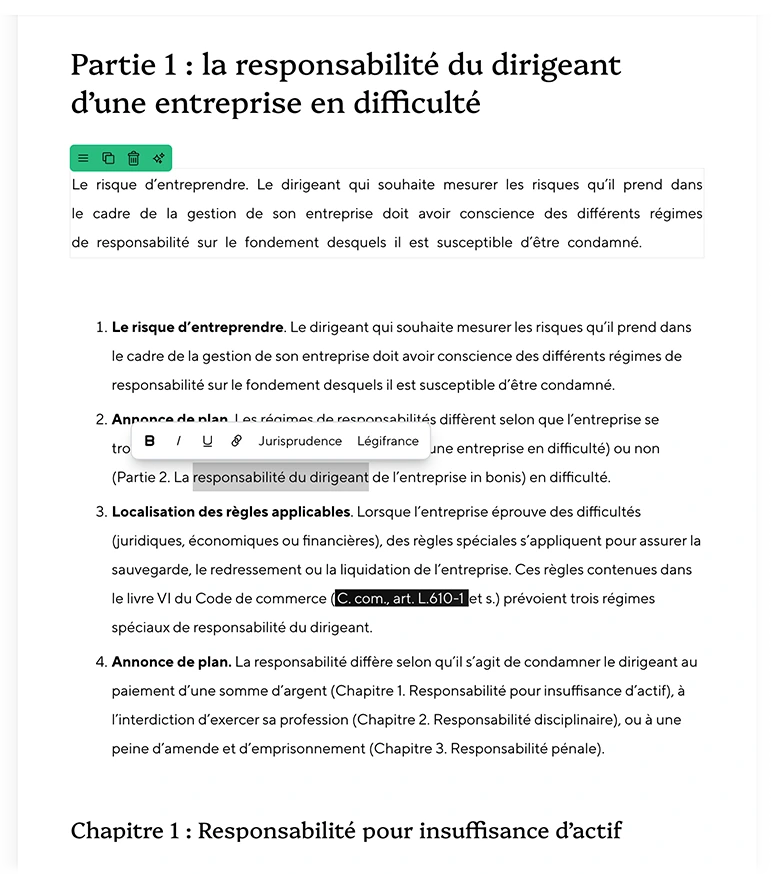 Rédigez vos publications avec un éditeur spécialement adapté au droit.