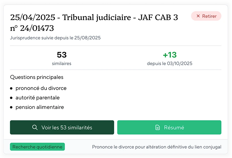 Consultez un résumé synthétique de chaque jurisprudences, accessible en un clic, vous économisant un précieux temps de lecture.